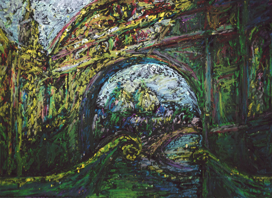 Интересно, все как будто мхом поросло, старина... Мне масляная пастель кажется тяжеловатой, я не работаю в этой технике, а у Вас получилось здорово.