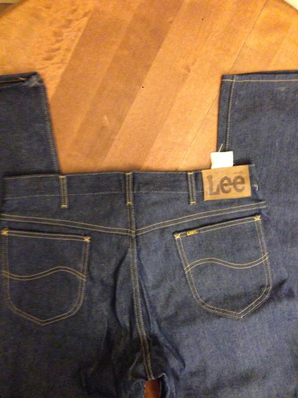 207. Абсолютно новые очень редкие джинсы Lee riders regular feet stright leg, 36х34, сделаны в середине 70-х из тяжелого 100% котона плотностью 14OZ левостороннего плетения, молния Talon 42 made in USA, заклепки LЕЕ(большое "Е"), кожаный патч, обметка внутренних швов - старый оверлок. Таких уже не осталось. Старые запасы - Made in USA.