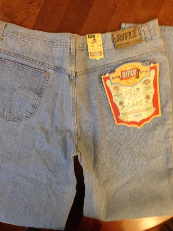 203. Абсолютно новые отличные редкие в таком цвете джинсы Rifle модель 8370-7-001-041, свело-голубые, сделаны в Италии в 80-x г. , очень тяжелый 100%cotton 14OZ, заклепки Western Rifle, молния YKK, кожаный патч. Старые запасы - made in Italy.