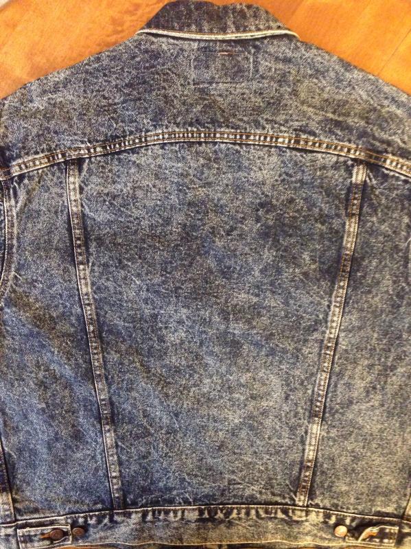 215. Новая джинсовая куртка Levi's 75068-0227, фабричный образец(Factory Sample), пробная партия, размер L сделана в середине 80-х, 100% хлопок, широкий рукав, двойные расширяющие швы сзади, цвет чернильно-синий индиго стоунвош(Dark Blue indigo Stonewashed), пуговица 755, белый таб(White tab), кожаный патч Levi's сзади, сделано в США. шесть карманов. В настоящее время уже не производится. Старые запасы - made in USA.