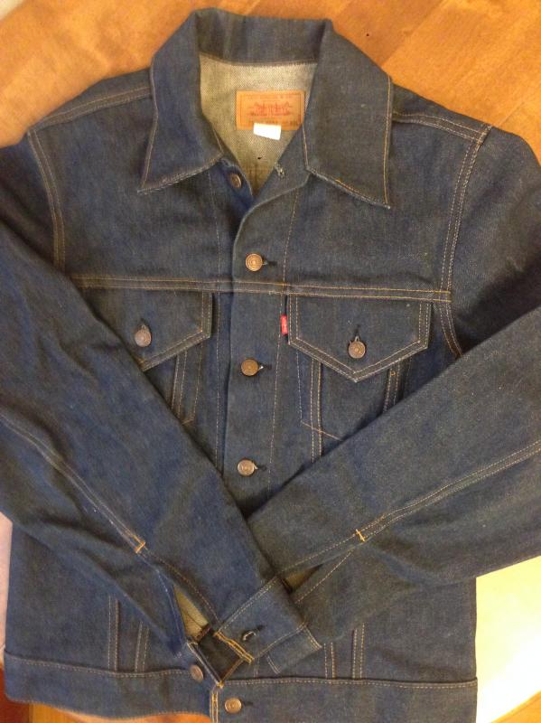 214. Новая классическая джинсовая куртка Levi's 71205-0217, редкая удлиненная размер 40L сделана в середине 70-х, 100% хлопок, цвет чернильно-синий индиго, пуговица 1, красный таб(Red tab), сделано в США. Два кармана. В настоящее время уже не производится. Очень старые запасы - made in USA.