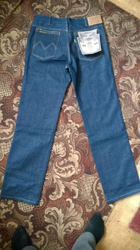 Могу предложить Монтану, тех времен, новые с бумагами, не вареные, не стираные, на задних карманах зиппера. Размер 36х34. 92 см пояс, 90 см шаг по внутреннему шву. С уважением, Александр. |