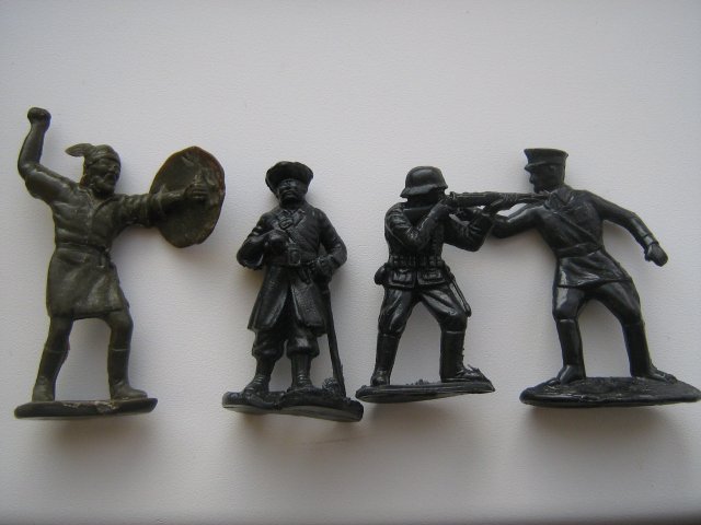 Как Вы делали? Поподробнее пожалуйста. Может прога какая нужна? А у меня её нема? Добавлено спустя 14 минут 53 секунды: Краском! Совет нужен Ваш,как опытного юзера- прога такая есть, видите пробовал))) Но скажите мне сколько Вы выставляете пикселей в графах- " Горизонталь" и " Вертикаль". Там одно значение выставляеш, второе автоматом подгоняется.З00 верхнее вводил- блин такая мозайка из пикслей получается))). Добавлено спустя 9 минут 47 секунд: Добавлено спустя 17 часов 3 минуты 20 секунд: [2 Добавлено спустя 3 минуты 30 секунд: Краском! Сделал я всётаки-получилось -хотя с Пайнтом помучился маленько! ну ничего,мне наука-учится когда нибуть да пришлось бы.Нас этому на курсах не учили ![]() Добавлено спустя 4 минуты: Ещё с винтовкой. ![]() Добавлено спустя 3 минуты 29 секунд: Ещё ![]() Добавлено спустя 4 минуты 33 секунды: Ещё ![]() Добавлено спустя 2 минуты 50 секунд: Командир с пистолетом ![]() Добавлено спустя 3 минуты 51 секунду: [Вот ещё с винтовкой ![]() Добавлено спустя 18 минут 31 секунду: Фоткал цифромыльницей, с зеркалкой незамарачивался...Фон - обложка книги.Понял как сжимать-у верхнего значения в пикселях Бэкспэйсом убираем последнюю цифру! И как видите всё в ёлочку)))Теперь Краском можете сами убедится-не миф и не ложь это-были они! А у меня они есть-храню как память о детстве.Вы вот пишите-не было мол кооперативных.А у нас наоборот-в основном они и были! Были ещё помню пограничники маленькие-ну вы их умоминали-со столбом пограничным и зелёной пластмассы.Богатыри-пластмассовые красные и такиеже из ЦАМа.Были ещё "столбики" из ЦАМа стоили около 4 рублей.Самые " козырные" как писал были у меня" Матросы в бою!" Прогрессовские.Индейцы были и ковбои тоже из коричневой пластмассы-кооперативные.Были разборные индейцы-ноги, туловище с руками,и голова.В голову перья вставлялись,помню терялись они и я делал из проводков от телефонного кабеля...А так-импортных у нас небыло! Может Вы жили где рядом с границей? Потому и были они там. Кто хоть однажды видел это, тот не забудет никогда!