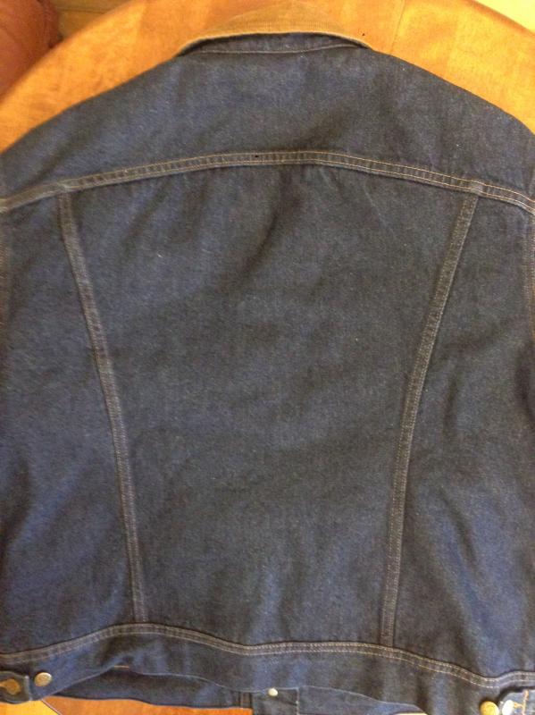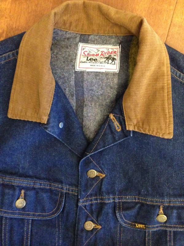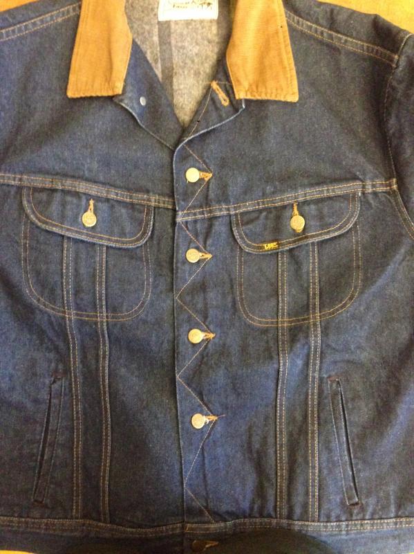 168. Новая отличная классическая джинсовая куртка Lee Storm riderr утепленная на подкладке, конец 70-х начало 80-х годов 20 века, 100% хлопок, очень тяжелый 14 +OZ не стиранный деним, цвет Dark Blue Indigo(чернильно-синий индиго), вельветовый воротник, утепленные рукава, утепленная подкладка, made in USA. Четыре кармана. Сзади железные пуговицы Lee riders. В настоящее время уже не производится. Старые запасы - made in USA