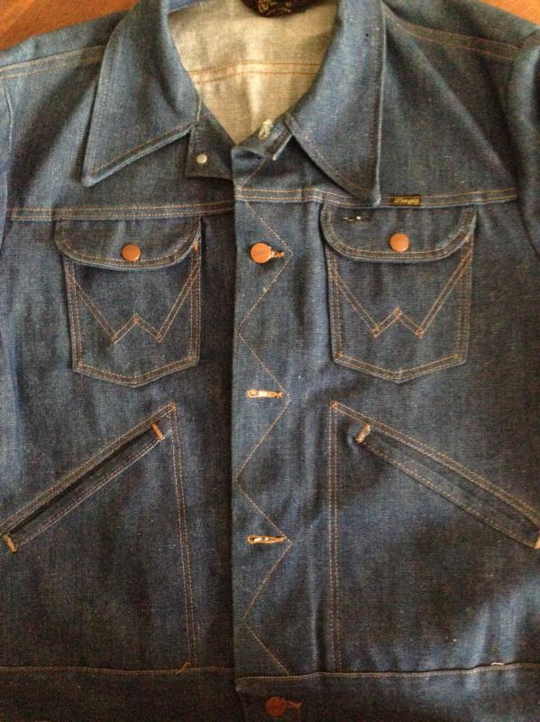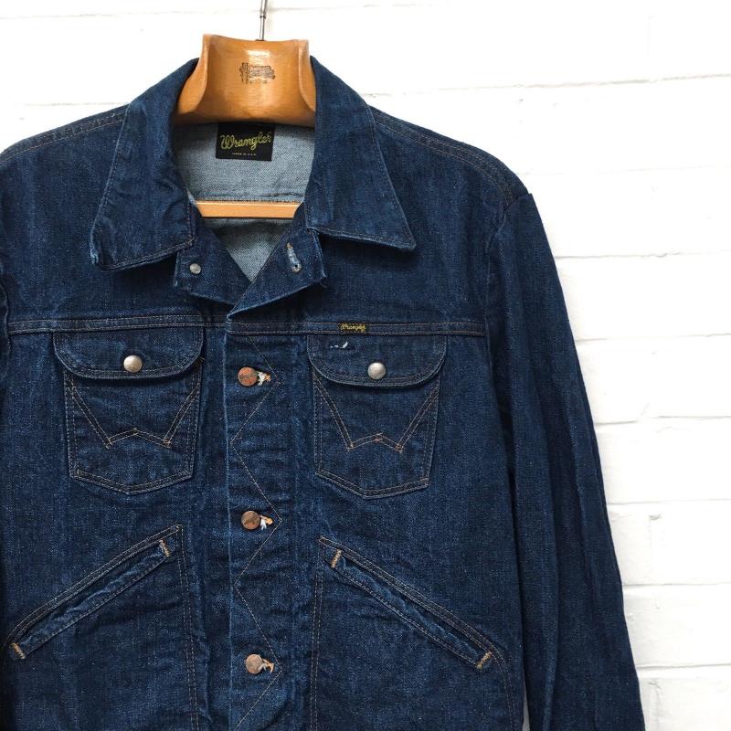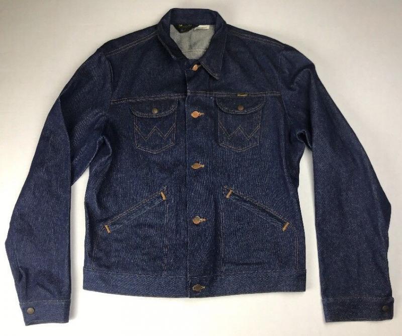 192. Классическая оригинальная джинсовая куртка Wrangler 136MJ Black Label , сделана в начале 70-х годов 20 века, made in USA, 100% хлопок, цвет Dark Blue (тёмно-синяя), материал Broken twill(елочка), двойные швы на рукавах, номерная пуговица. Старые запасы - made in USA.