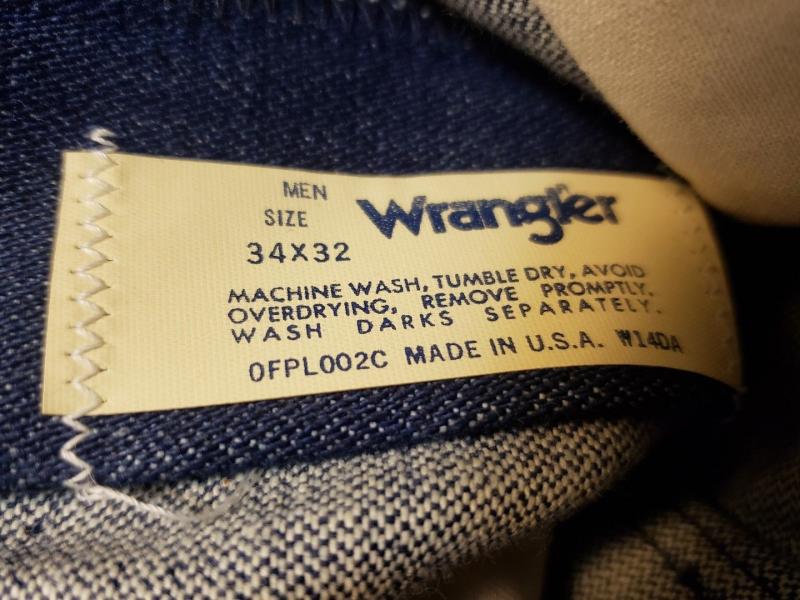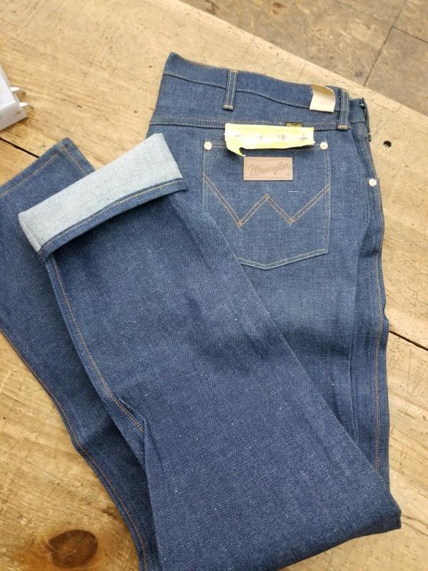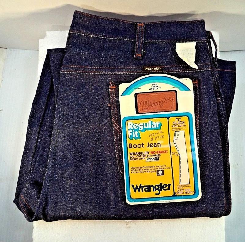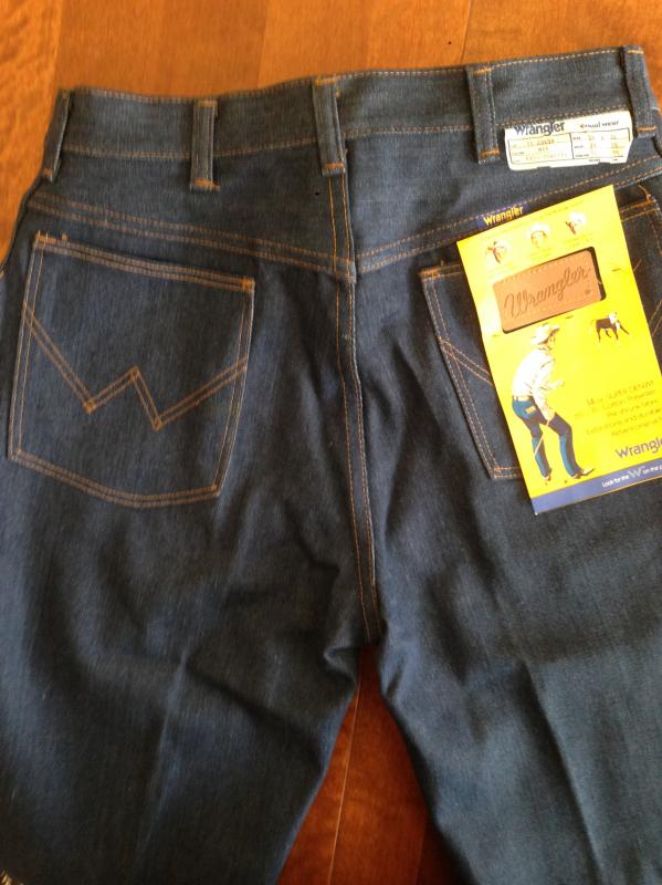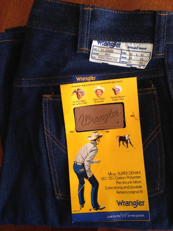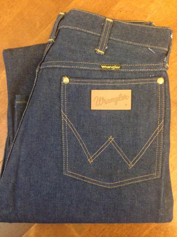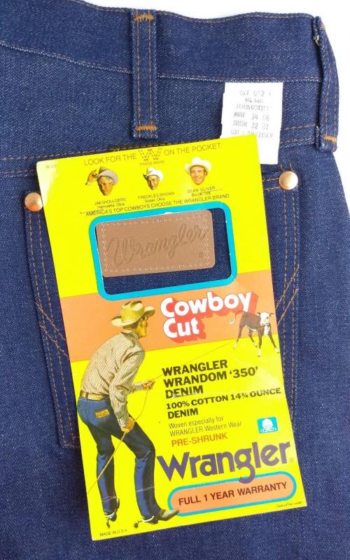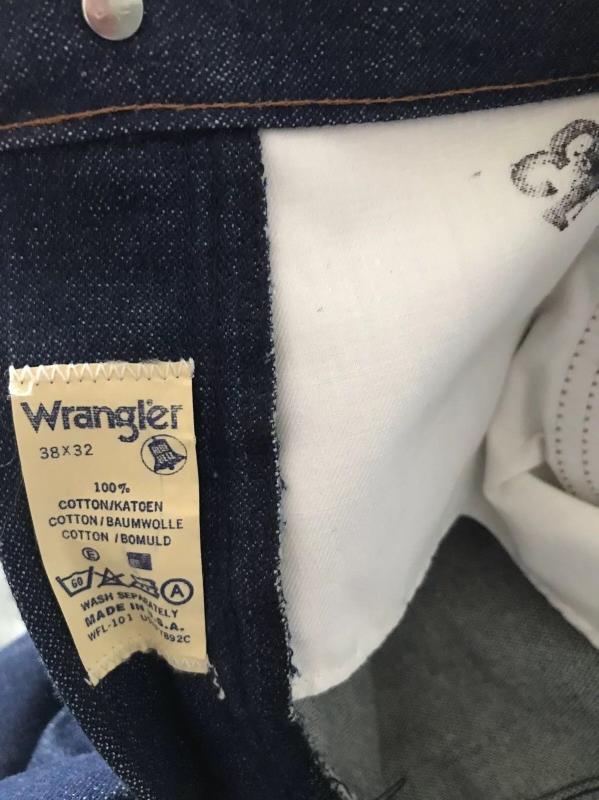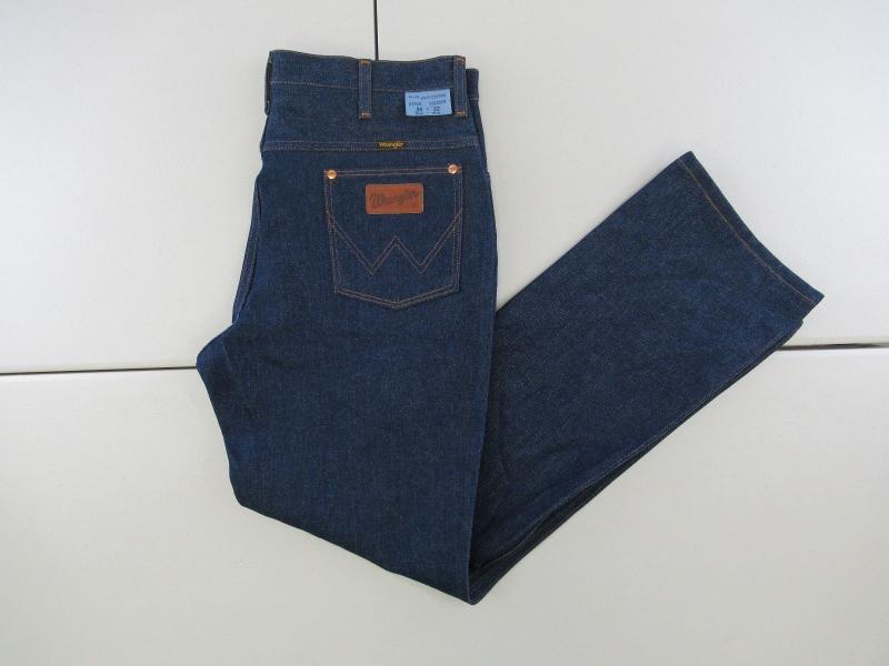 189. Абсолютно новые легендарные мальтийские мужские джинсы Wrangler, модель 110345V, сделаны в середине 80-х, Wrangler Blue label(синяя этикетка), тяжелый blended cotton, 14OZ, молния Eclair, колокол на заклепках, клепаный малый карман, номерная пуговица, кожаный патч. Старые запасы - made in Malta.