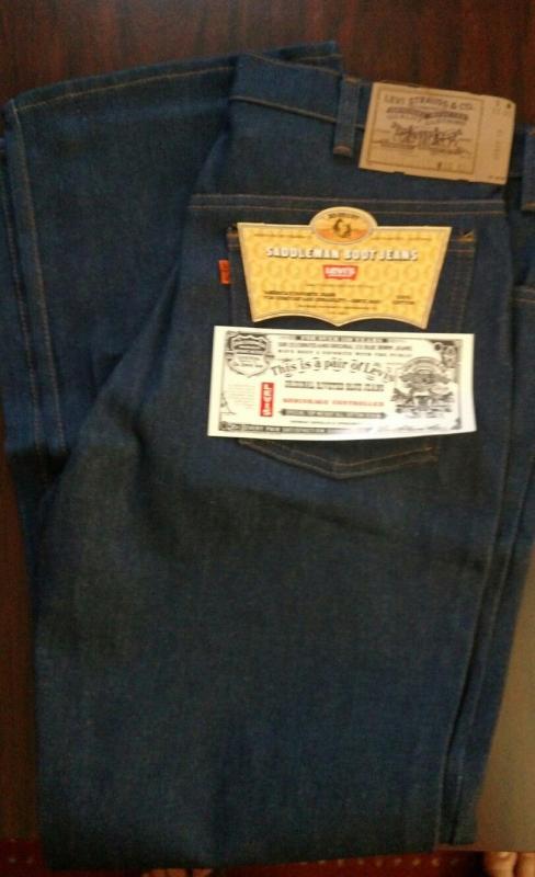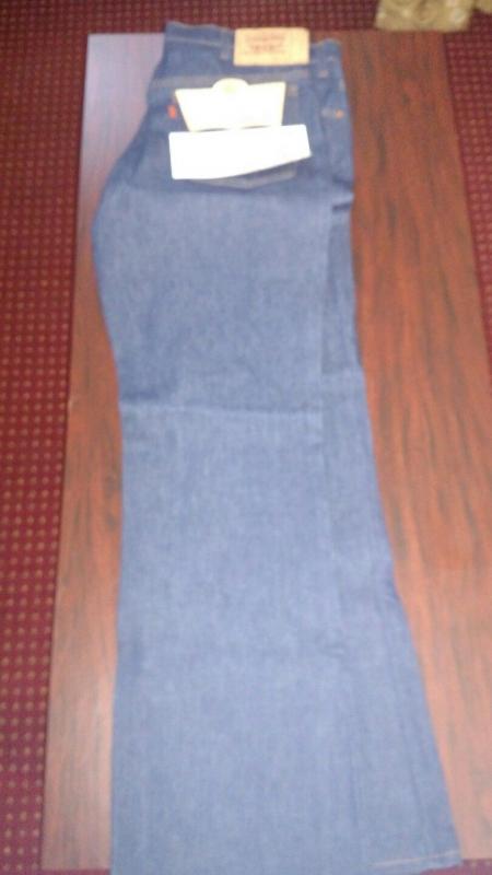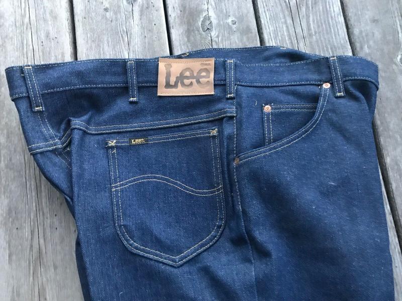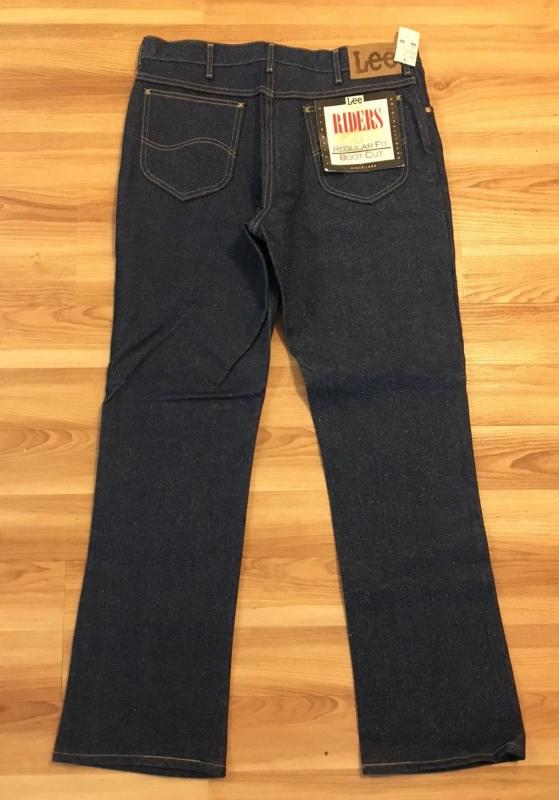 169. Абсолютно новые редкие джинсы Lee riders regular feet boot cut, 40х32, сделаны в начале 70-х, тяжелый левосторонний 100% cotton 14OZ, молния Talon made in USA, заклепки LЕЕ(большое "Е"), кожаный патч, Union Made TAG с внутренней стороны правого переднего кармана, обметка внутренних швов - старый оверлок, желтая нитка. Made in USA - old stock