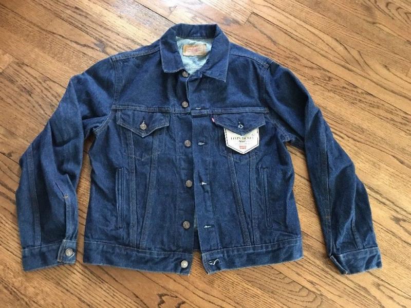 Четыре кармана. Медные пуговицы. В настоящее времени уже не производится. Два нагрудных, два боковых кармана Размер: US 46 Российский размер 50/52 Реальные замеры: длина по плечевым швам - 50 см длина по подмышками - 58 см длина от подмышки до конца манжеты рукава - 53 см длина рукава - 65 см длина сзади по центру от воротникового шва до низа - 62 см длина окружности по талии - 50 см 193. Абсолютно новая классическая джинсовая куртка Levi's 70506-0217 середина 70-х, жесткая не стиранная, 100% хлопок, цвет - very dark indigo(очень чернильно-синий индиго), красный таб(Red tab), двойные швы на рукавах, 52 пуговица, сделано в США. Четыре кармана. В настоящее время уже не производится. Очень старые запасы - made in USA. Модель/цвет - 70506-0217 2 нагрудных кармана, 2 косых кармана Размер по тегу US - 44L(удлиненная) - редко встречается Российский размер - 50\52 Реальные замеры: длина по плечевым швам - 49 см длина по подмышкам - 56,5 см длина рукава - 68 см дина от подмышки до конца манжеты рукава - 54 см длина по центру от воротникового шва до низа - 62 см пояс - 51 см 194. Абсолютно новая классическая джинсовая куртка Levi's 70506-0216 середина 80-х, made in USA, 100% хлопок, цвет - dark blue indigo(темно-синий индиго), номерная пуговица 725, красный таб(Red tab), сделано в США. Четыре кармана. В настоящее время уже не производится. Старые запасы - made in USA. Модель/цвет - 70506-0216 2 нагрудных кармана, 2 косых кармана Размер по тегу US - 42R Российский размер - 48/50 Реальные замеры: длина спереди по плечевым швам - 48 см длина по подмышкам - 54 см длина рукава - 63 см дина от подмышки до конца манжеты рукава - 54 см длина по центру от воротникового шва до низа - 60 см пояс - 50,5 см 195. Отличная классическая джинсовая куртка Lee Storm riderr модель 221-5089, утепленная на подкладке, конец 80-х годов 20 века, 100% хлопок, цвет Dark Blue Rinsed (тёмно-синяя стоунвош), вельветовый воротник, утепленные рукава, утепленная подкладка, Четыре кармана. Сзади пуговицы Lee riders. Старые запасы - made in Mexico. 2 нагрудных кармана и 2 косых кармана. Размер: по тегу US - XL. Российский размер - 58 Реальные замеры: длина по плечевым швам - 56 см длина по подмышками - 69 см длина от подмышки до конца манжеты рукава - 48 см длина рукава - 63 см пояс - 60 см длина сзади по центру от воротникового шва до низа - 66 см 196. Классическая джинсовая куртка Lee Riders модель 220-0241, made in USA, середины 70-х годов 20 века, жесткая не стиранная, 100% хлопок, цвет Dark Blue Indigo(тёмно-синий индиго), Union Made label в переднем правом кармане, двойной шов под воротником, сделано в США. Два кармана. В настоящее время уже не производится. Сзади пуговицы Cat's eye. Старые запасы - made in USA. 2 нагрудных кармана. Размер по тегу US - 44. Российский размер - 52/54 Реальные замеры: длина по плечевым швам - 53 см длина по подмышками - 59/60 см длина от подмышки до конца манжеты рукава - 53 см длина рукава - 67 см пояс - 55 см длина сзади по центру от воротникового шва до низа - 60см 197. Абсолютно новые классические мужские джинсы Wrangler 912DEN, сделаны в США в середине 80-х , тяжелый 100%cotton 14 3/4 OZ, жесткие не стиранные, кожаный патч, двойной боковой шов, молния Ideal made in USA. медные заклепки на передних и задних карманах, материал - broken twill(елочка). Старые запасы - made in USA. Regular fit, straight leg - прямой фит, прямые(не клешеные), высокая посадка, жесткие(Rigid), не стиранные, dark blue indigo(чернильно темно-синий индиго). Размер по тегу US - W36x L32 Российский размер - 52; Реальные замеры: полуталия - 45 см; передняя посадка - 33 см; внутренний шов - 82 см; длина - 110 см; низ штанины - 21,5 см. 198. Абс