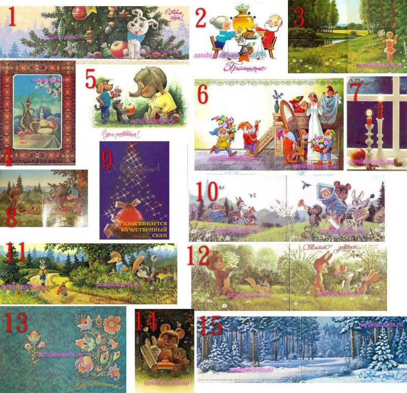 Здравствуйте! Большое спасибо, что откликнулись на наше сообщение про открытки!!!! Может, у Вас будет возможность поискать.... (Это открытка С Рождеством!" у меня на фото она под номером 7) Поищите ПОЖАЛУЙСТА!!!! Так хочется пополнить коллекцию.... Я куплю у Вас!!!! На всякий случаю высылаю и сюда фото нужных открыток... может, и еще что-то отыщется.... А еще мы коллекционируем поздравительные открытки 50-60-х годов!! (новогодние, поздравляю, первомайские, агитационные, с пионерами, детьми и животными, с новосельем и т.п.) |