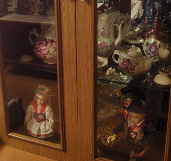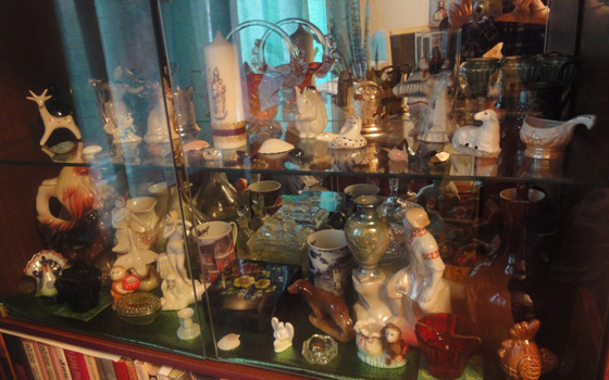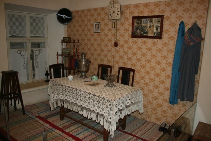 Вхожу в благоговейную тишину, чистоту, душистость. Ни тебе грязных вонючих болоток, ни рогатого велосипеда (о который все спотыкаются) в прихожей. Нежно-голубые панели, малиновая дорожка, шторы с гардинами благородного темно-шоколадного цвета. Иногда и теперь мне снится, что я живу в этой квартире или прихожу в гости. В зал даже страшновато зайти – такая там лепота расписная! Сквозь морозные узоры дорогого тюля падают на крашеный пол прихотливые тени. Кровать с никелированными спинками и шишечками на углах, кровать немыслимой высоты (столько матрасов и пуховиков было только у принцессы на горошине!), похожа на воздушный трот со взбитыми сливками: кружевные подзоры, снежно-сладкие простыни, гора подушек, которая вот-вот, кажется, обрушится (подушек тоже особых – пышных, больших, в свежих наволочках), тюлевые накидушки, думочки с вышивкой… На все это сказочное великолепие, пригорюнившись по каким-то своим сердечным причинам, взирала со стены васнецовская Аленушка (репродукция была большая, в деревянной раме) – и, наверное, жалела, что не она живет в такой светлой горнице, не она спит на этих перинах лебяжьей красоты. Над кроватью – коврик с оленями: на густой темно-синей плюшевой синеве – два царственно-золотых рогатых изюбря. А над ковром – и это было самое поразительное – голова такого же оленя! Совершенно натуральная, живая, с блестящими черно-синими глазами и корявыми рожками! К чучелу оленьей головы мы, конечно, прикасались (хотя было строго-настрого запрещено!), гладили жесткую оленью шерсть на морде, трогали колкие, в пупырышках, рога… В углу, ближе к двери - массивный платяной шкаф глубокого шоколадного цвета, полированный, с малахитово-зеленым стеклом верхней боковой дверцы. Завидный шкаф, в котором помимо шуб и платьев, хранились старые, аккуратно перевязанные ленточками открытки, пачки писем и еще какие-то невероятные фамильные ценности. За боковой узкой дверцей шкафа открывалась стопочка белоснежного, бережно сложенного постельного белья. Аккуратность этих этажей умиляла. Очень понимаю Гаева! «Многоуважаемый шкаф» Анны Семеновны был оплотом прочности, вечности, основательности. Мне он казался старинным и очень дорогим. Всю стену напротив закрывал огромный ковер в бежево-коричнево-красноватых тонах, с традиционным орнаментом. От него в комнате было немного сумеречно, уютно, тепло, покойно, и все звуки приглушались его густым ворсом. У ковровой стены, на полусерванте – массивный ящик радиолы, купленной, наверно, в конце 60х, такой ретрошарм она имела. В полусерванте стояло немного хрусталя, который, как всем известно, символ достатка в советской семье, и несколько фарфоровых статуэток. Мне особенно нравятся палевые фарфоровые львята, разлегшиеся на стеклянной полке. В углу, ближе к окну – трельяж, на нем, помимо духов «Красная Москва» и «Наташа», тоже стоят разные фарфоровые дивности. Помнятся нежные на ощупь фарфоровые поросятки и их мама-свинка (трогать нельзя, все перебьем или потеряем!). А какой там орел распростер крылья! Орел из желто-зеленого фосфора (а не фарфора!) особо почитаем, потому что волшебный: светится в темноте! Посередине зала – стол, основательный, устойчивый, покрытый либо плюшевой яркой, либо белой кружевной вязаной крючком скатертью. На нем обычно стоит хрустальная ваза с цветами по сезону – жаркам