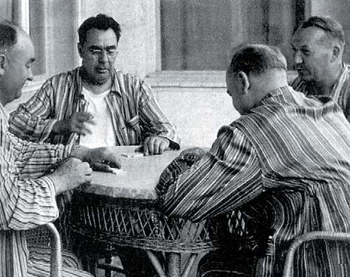 А доминошный стол во дворе у Вас был, где наши отцы и деды стучали "костяшками" по субботне-воскресным вечерам?! )) Вот и Леонид Ильич, отдыхая от трудов праведных, тоже был не против "костяшками" постучать, с коллегами, на досуге |