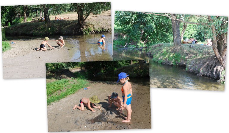 Мои бабушки-дедушки жили за речкой. Выйдёшь из душного, разогретого автобуса летом, спустишься к речке, а там прохладно и воздух, как родниковая вода - пьёшь и не напьёшься. А, если весной - черёмуха с ума сводит. В её зарослях обычно соловьи гнёзда вьют, и по ночам такие трели выводят! ... После душного города, как в другой мир попадаешь. Да так оно и есть. В деревне совсем другой ритм жизни - спокойный, размеренный. Никуда не торопишься и, вроде, всё успеваешь. ... Разуешься, ступишь в прозрачную водичку, пошлёпаешь по песочному дну с редкой мелкой галькой и вся усталость после нудной дороги куда-то исчезает. Хочется бегать, брызгаться, строить из песка города и замки ... Вот моя речка. И водичка такая же прозрачная. И мы также играли, как эти детки. ![]() |