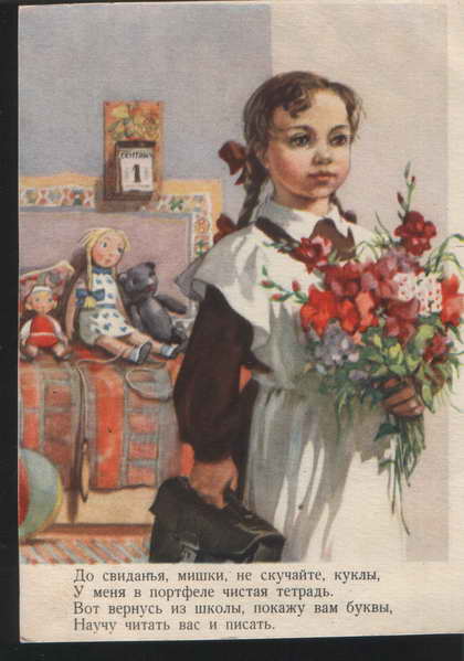 В первый класс я ходила в городе Витебске, после чего я уехала домой, в Ленинград, где и продолжала учиться. И вот несколько лет назад в одной из социальный сетей я получила письмо от одной девушки, которая представилась моей одноклассницей из той самой школы. Я совершенно не запомнила её (смутно помню лишь нескольких человек, скорее по именам и фамилиям) и поэтому спросила, не перепутала ли она меня с кем-то. На что она мне ответила:"Ну как же можно тебя забыть и с кем-то перепутать, когда ты была единственной девочкой в классе, у которой были обложки (прозрачные) с рисунком, которым завидовал весь класс"