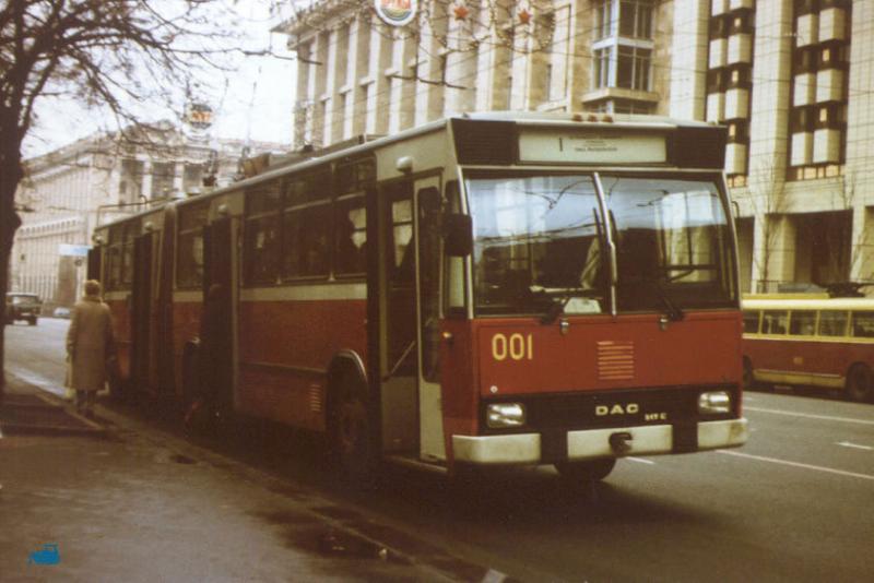 Ну, а теперь, опять вернемся к технике. Вот в такую фуру залезли Никулин, Вицин и Моргунов в "Кавказской пленнице". Жаль, что не нашел кадра. А вот это - более новый трейлер "Шкода". Оба кадра из фильма "Трое на шоссе". А. Джигарханян и В. Невинный на фоне "Шкоды" Кстати, мы еще не упомянули Румынию. Вот такие троллейбусы были закуплены в начале перестройки (год примерно 1986) исключительно для двух городов: Киева и Харькова: Это - "Дак-217е" выпускавшийся бухарестским заводом "Аутобузул". Не знаю почему, но кроме Киева и Харькова в другие города такие троллейбусы не поставлялись. В Киеве они дожили до 2007 г., в Харькове несколько машин работают до сих пор. |