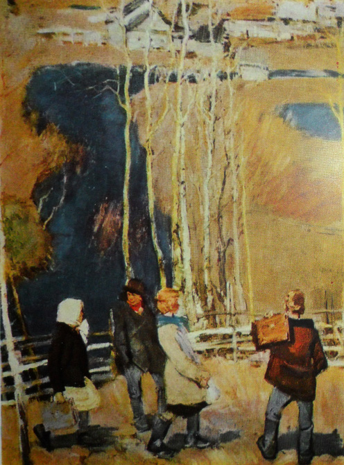 А где еще картинки (или фрагменты текста без картинок), чтобы по ним отгадать книгу? Добавлено спустя 19 часов 43 минуты 42 секунды: Что-то я отвлекся на книжную графику. Вернусь к "школьной теме": "Школьные годы чудесные..." Из личной коллекции старых советских открыток: Н.А.Касаткин. Пионерка с книгами. 1926. И.И.Машков. Пионерлагерь в Крыму. 1922. С.В.Рянгина. Ликбез. Баку. 1930-е. (школа была не только для детей! )Ф.П.Решетников. Опять двойка. 1952. П.А.Оборин. Первый успех. 1954. В.И.Тюленев. В школу. 1964. Не плюй в прошлое, иначе будущее плюнет в тебя.