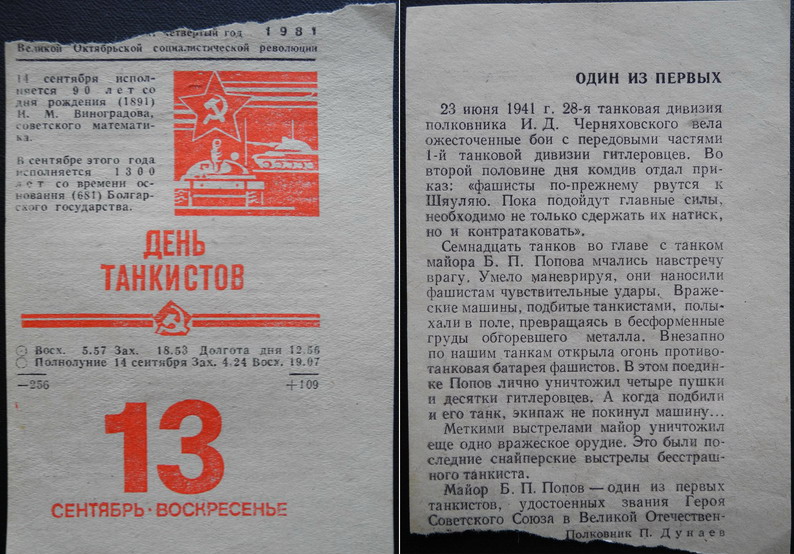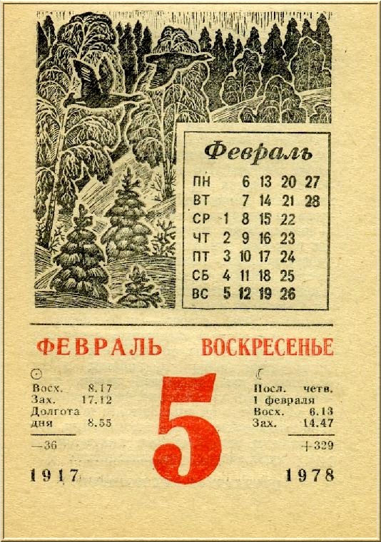Коль вспомнили отрывные календари, вот один из листков давнего времени.