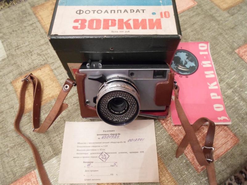 Нашёл в глубинах шкафов Зоркий 10. Коробочка родная и документики имеются. Приятная штука, жаль, что совершенно бесполезная в современном мире. А ведь в 1965 году стоил аж 100 руб., огромные деньги. :D