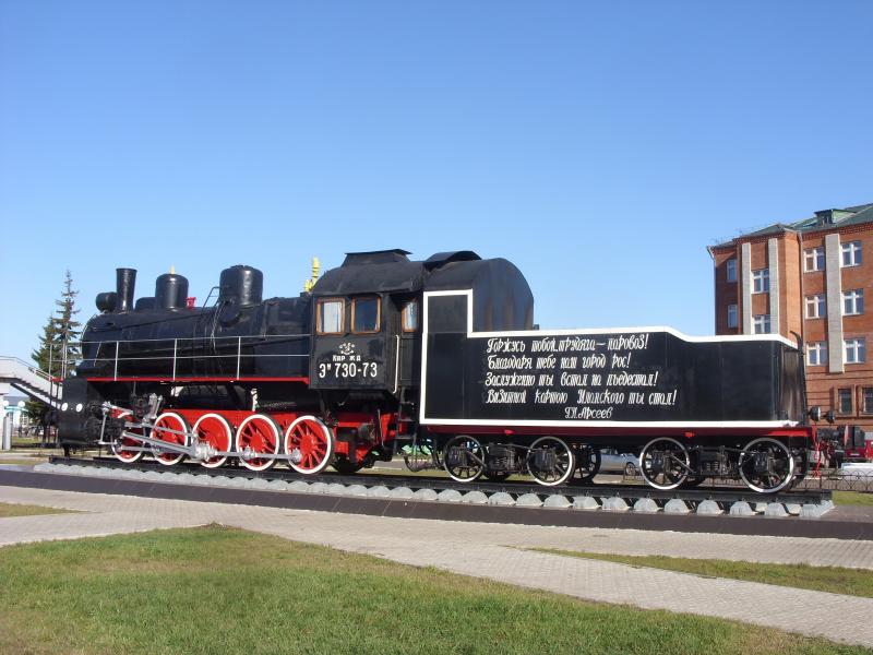 По количеству построенных локомотивов (около 11 тысяч) и по общей продолжительности выпуска паровоз Э является абсолютным рекордсменом в истории мирового паровозостроения. Памятник паровозу Эм в Нижнеудинске. |